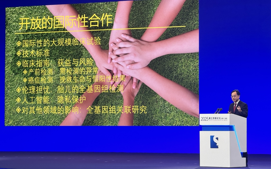 在今天举行的2025浦江创新论坛主论坛上,中国科学院院士、香港中文大学校长卢煜明在“以无创诊断推进人类健康”的报告中,为癌症筛查描绘了一幅美好的愿景:未来,通过人体血液中的DNA,不仅可以实现多种癌症的早期筛查,还可能发现脑退化、脑卒中等疾病,甚至身体衰老的迹象。